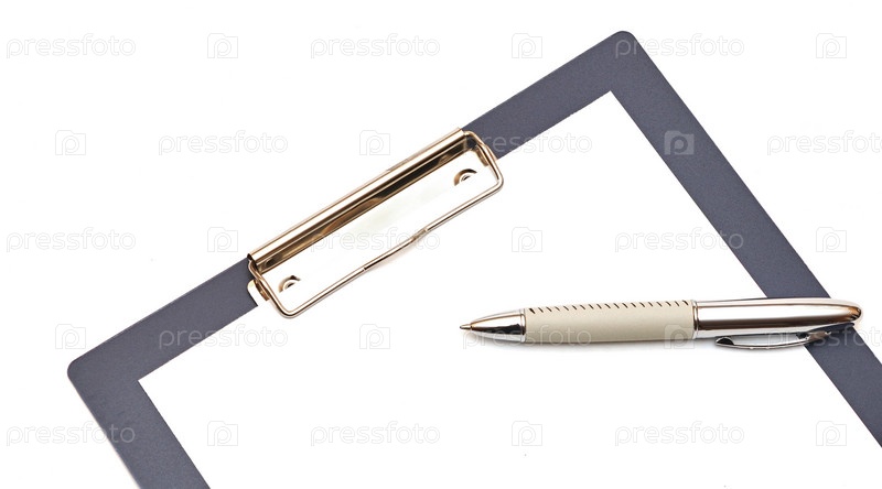 Папка с белым листом бумаги и ручкой