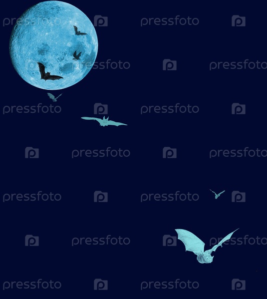Летучие мыши на фоне ночного неба и луны