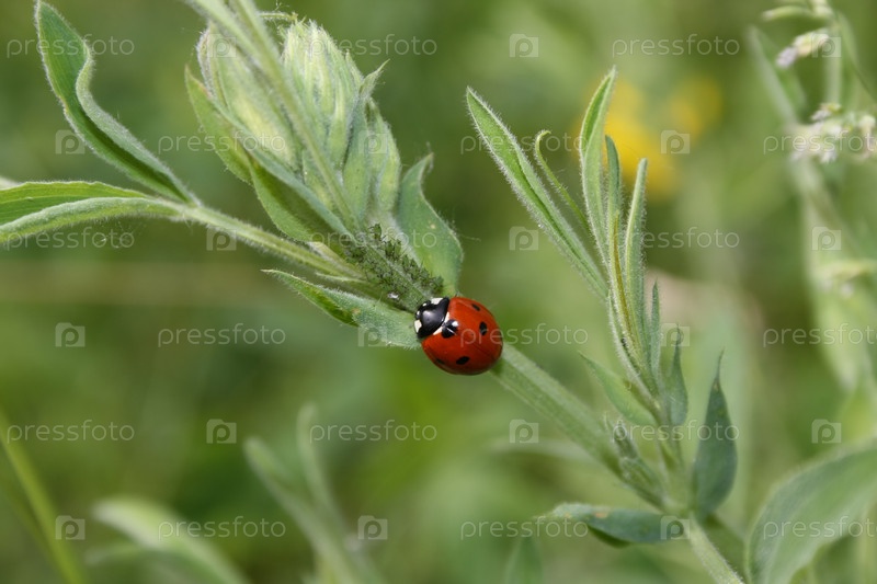Божья коровка на травинке