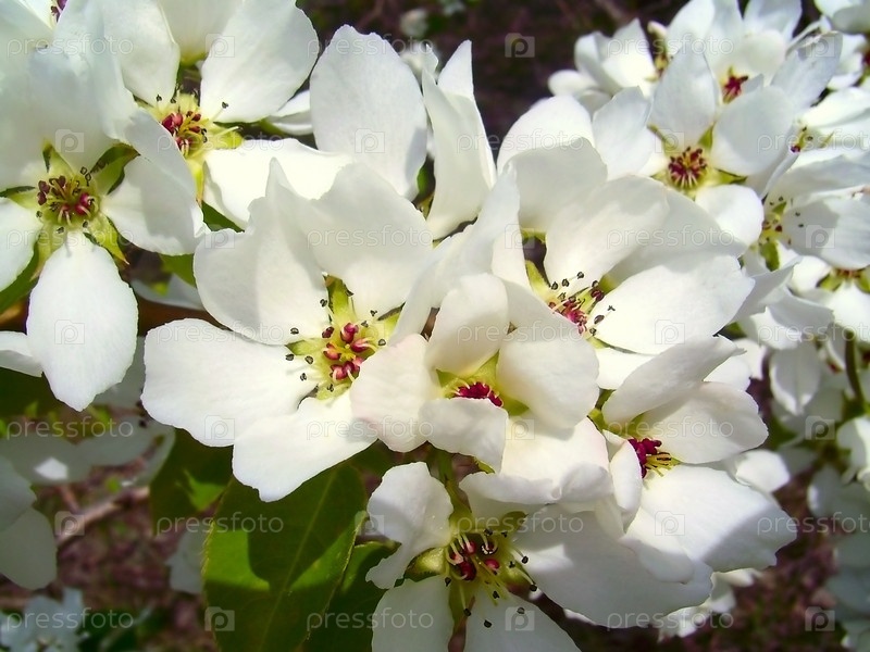 На деревьях распускаются белые цветы, многие из них