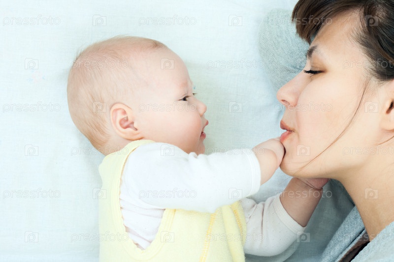 Счастливая семья: мать и ребенок - играют и улыбаются