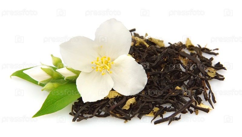 Красивые цветы жасмина и чая на белом