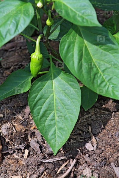 Зеленый перец, растущий в теплице