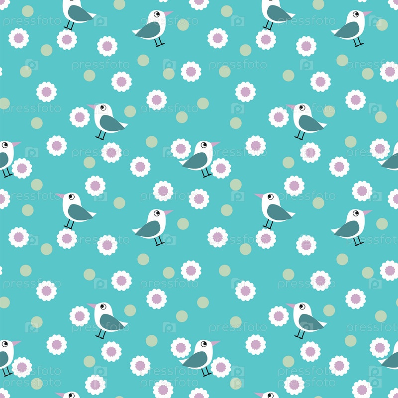 Птицы и цветы на синем фоне