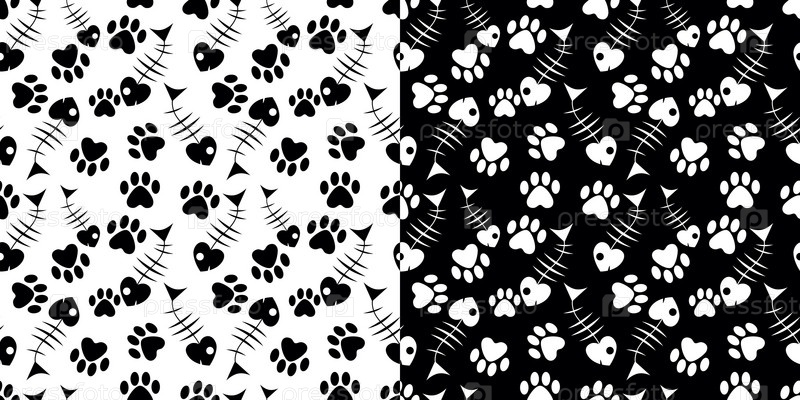 Следы зверей и рыбьи скелеты на черно-белом фоне