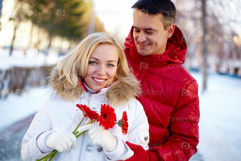 Счастливая пара на улице зимой
