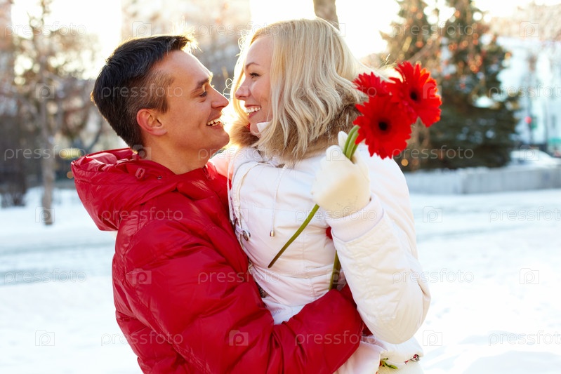 Романтическая пара на улице зимой
