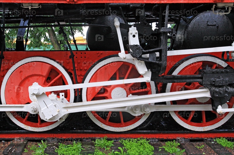 Колеса старого паровоза на рельсах