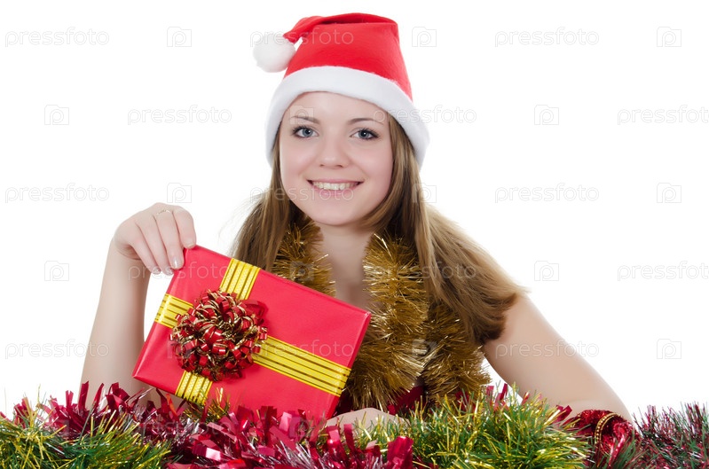 Девушка в шапочке Санта Клауса
