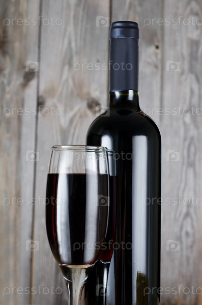 Бутылка и бокал красного вина