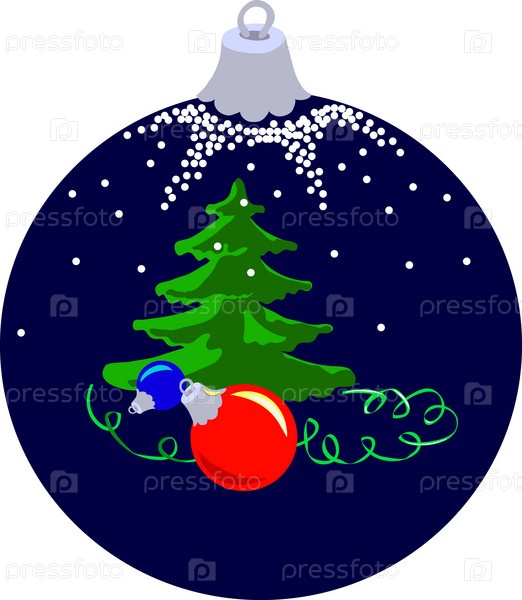 Новогодняя елка и игрушки на елочном шаре