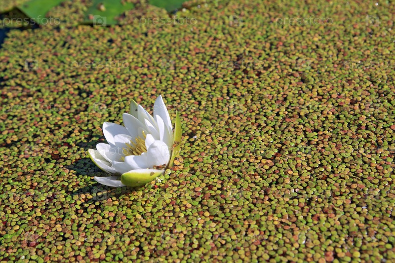 Белая водяная лилия в ряске