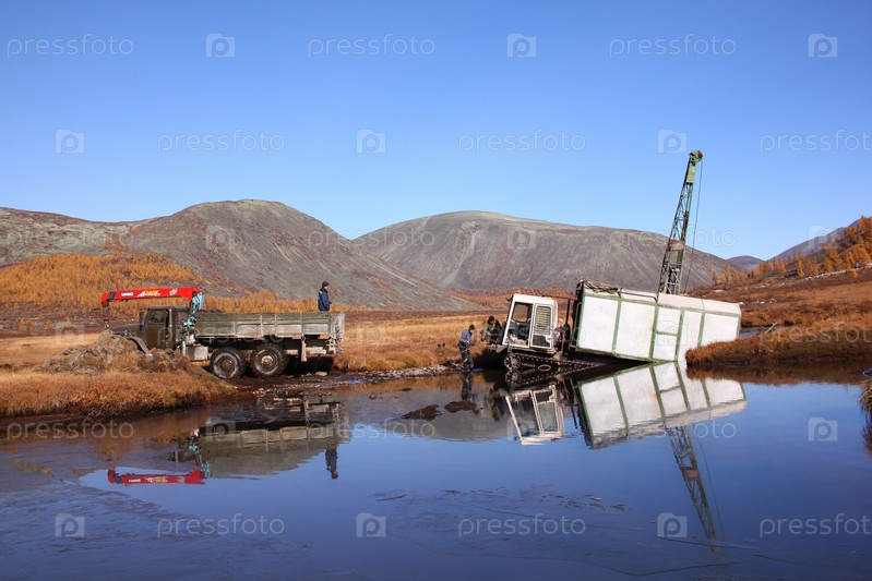 Машина вытягивает застрявший вездеход