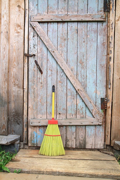 Метла около деревянной двери