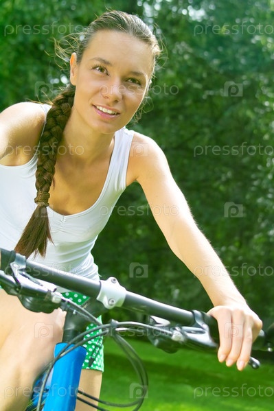 Активная леди катается на велосипеде в парке