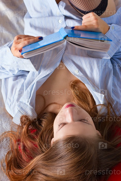 Красивая молодая женщина читает книгу