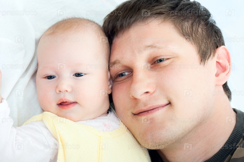 Счастливая семья: отец и ребенок - играют и улыбаются