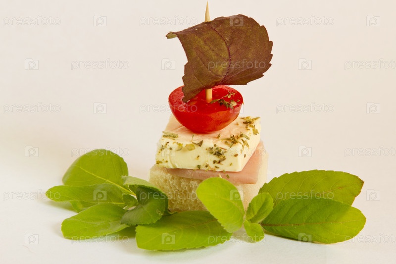 Канапе с ветчиной и сыром на белом фоне