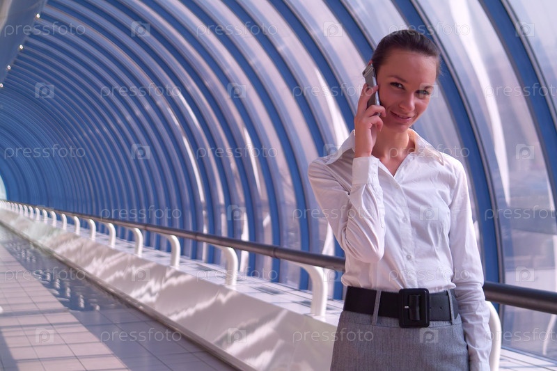 Красивая молодая бизнес-леди разговаривает по телефону
