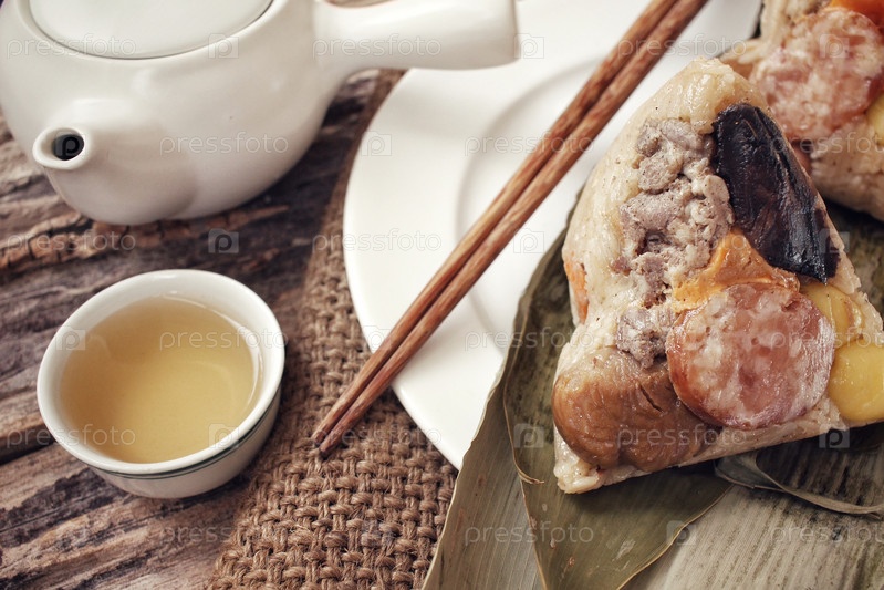 Цзунцзы с горячим чаем