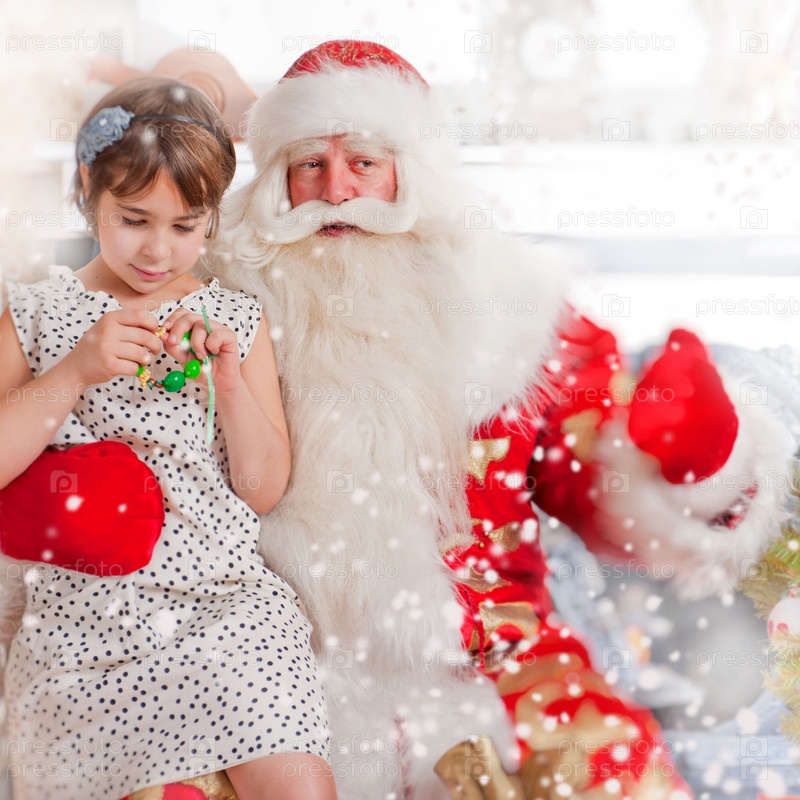 Маленькая девочка и Дед Мороз в домашней обстановке