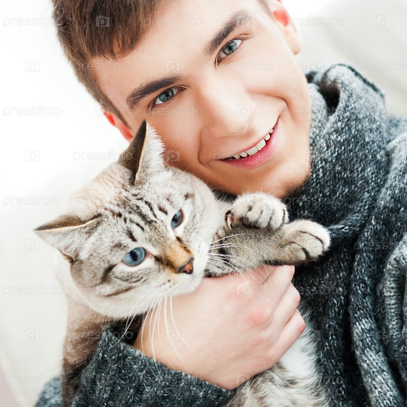 Молодой человек с кошкой