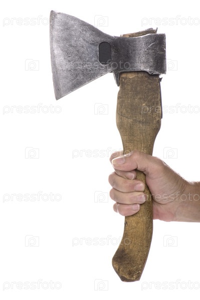 Топор в руке на белом фоне