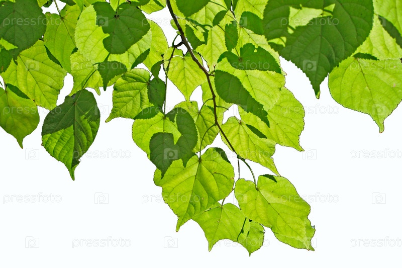 Ветка с зелеными листьями на белом фоне