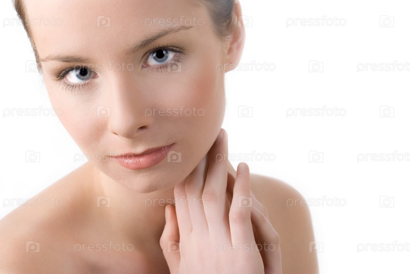 Красивая девушка с идеальной кожей, изолированная на белом фоне