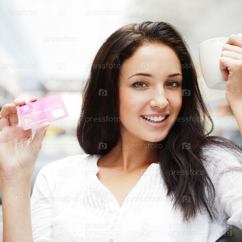 Молодая девушка с кредитной карточкой