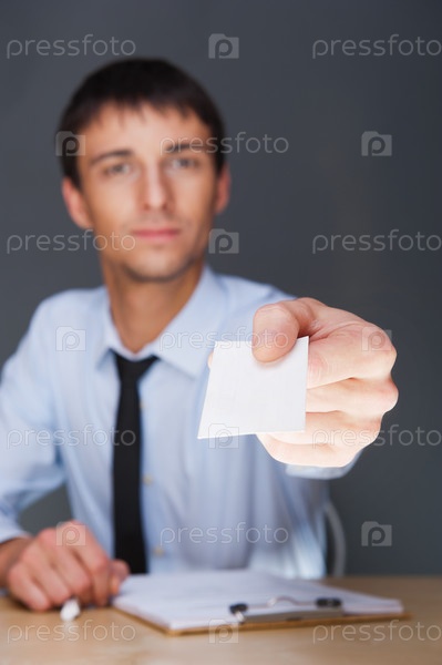 Молодой человек показывает свою визитку