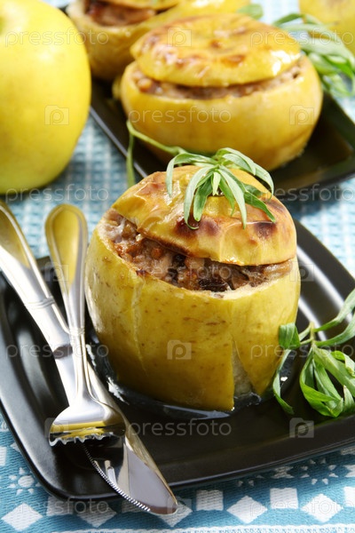 Яблоки, фаршированные курицей, черносливом и грецкими орехами