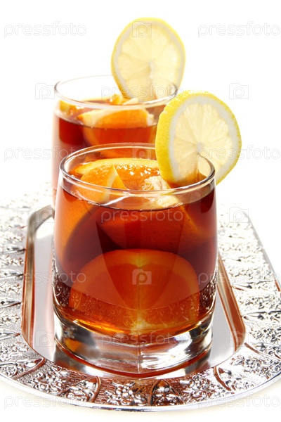 Горячий черный чай с апельсинами и лимоном