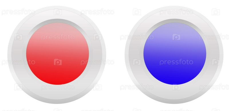 Красная и синяя кнопки на белом фоне