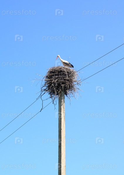 Аист в гнезде на электрическом столбе