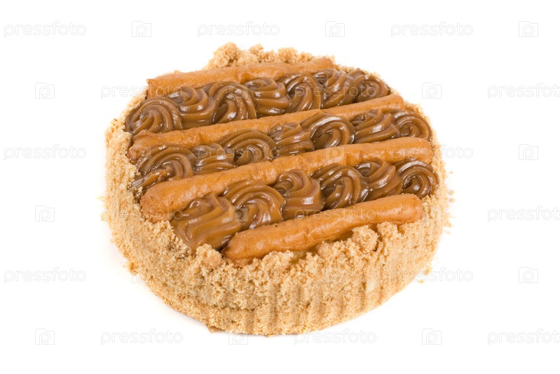 Кремовый торт крупным планом на белом