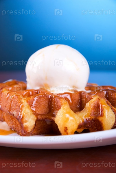 Вкусные вафли и мороженое со сливками