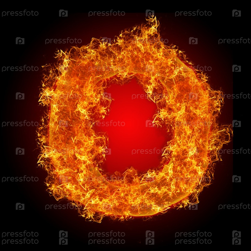 Огненная буква О на черном фоне
