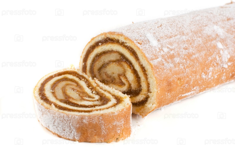 Швейцарский рулет с повидлом, изолированный на белом фоне