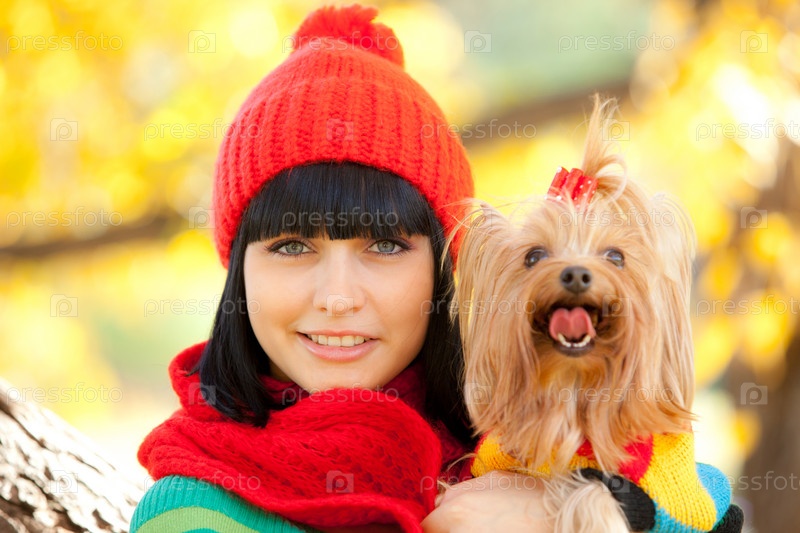Девушка с йоркширским терьером на руках