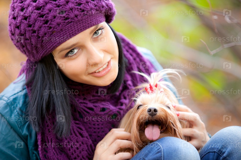 Девушка с йоркширским терьером на руках