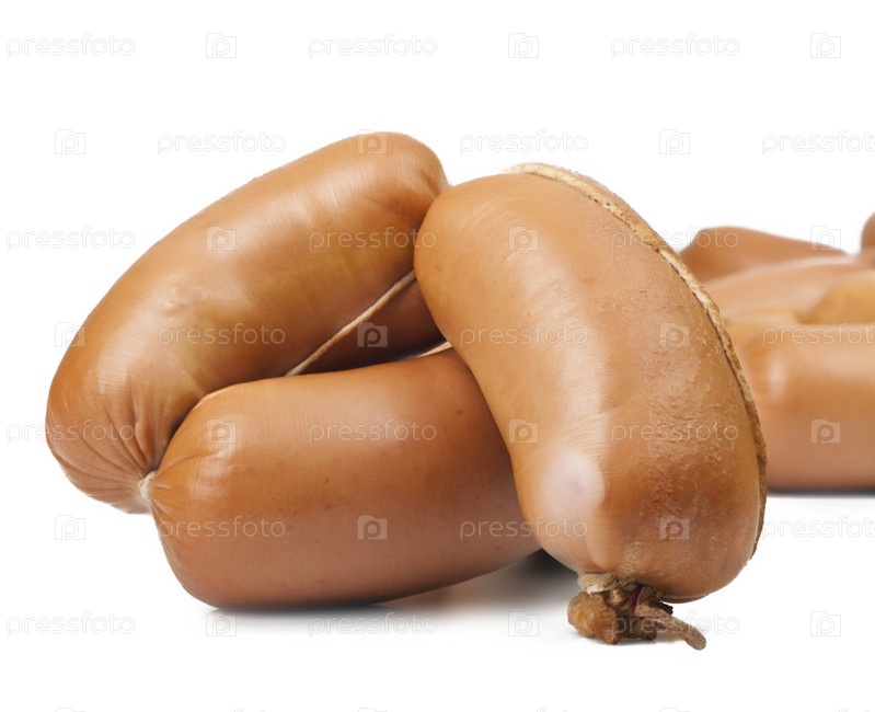 Сардельки крупным планом, на белом фоне