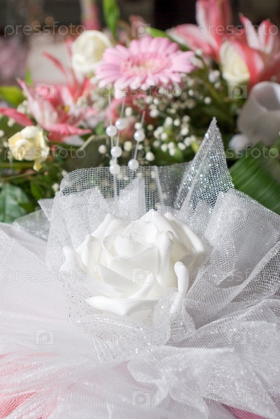 Свадебный белый бант в виде розы