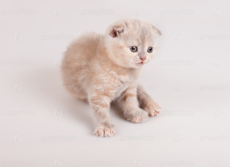 Маленький котенок сидит на светлом полу