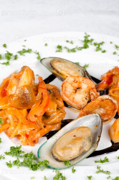 Креветки и кальмары, мидии