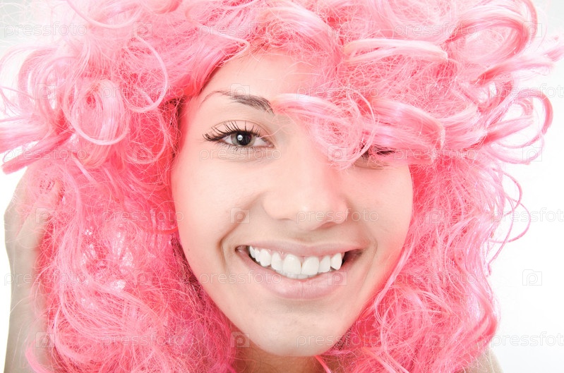 Портрет красивой девушки с розовыми волосами