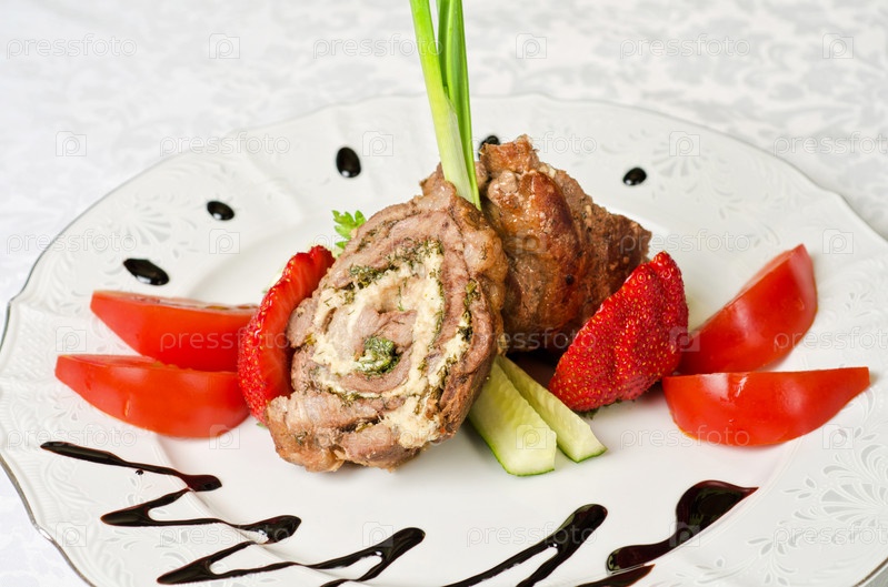 Рулетики из свинины с сыром и овощами