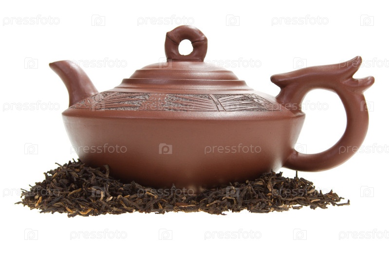 Китайский глиняный чайник с узором в сушеных листьях чая