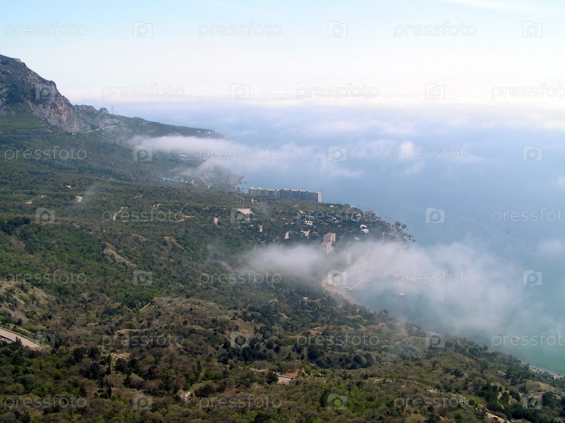 Гора, покрытая лесом над берегом моря
