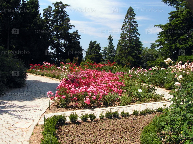 Цветочный клумб и розарий в ботаническом саду